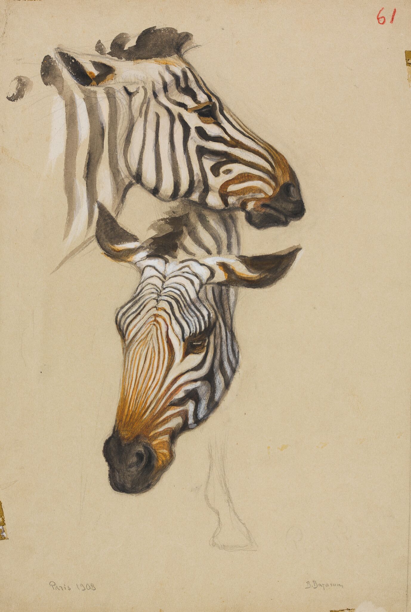 Василий Ватагин. Голова зебры. Два наброска. 1908. Государственная Третьяковская галерея