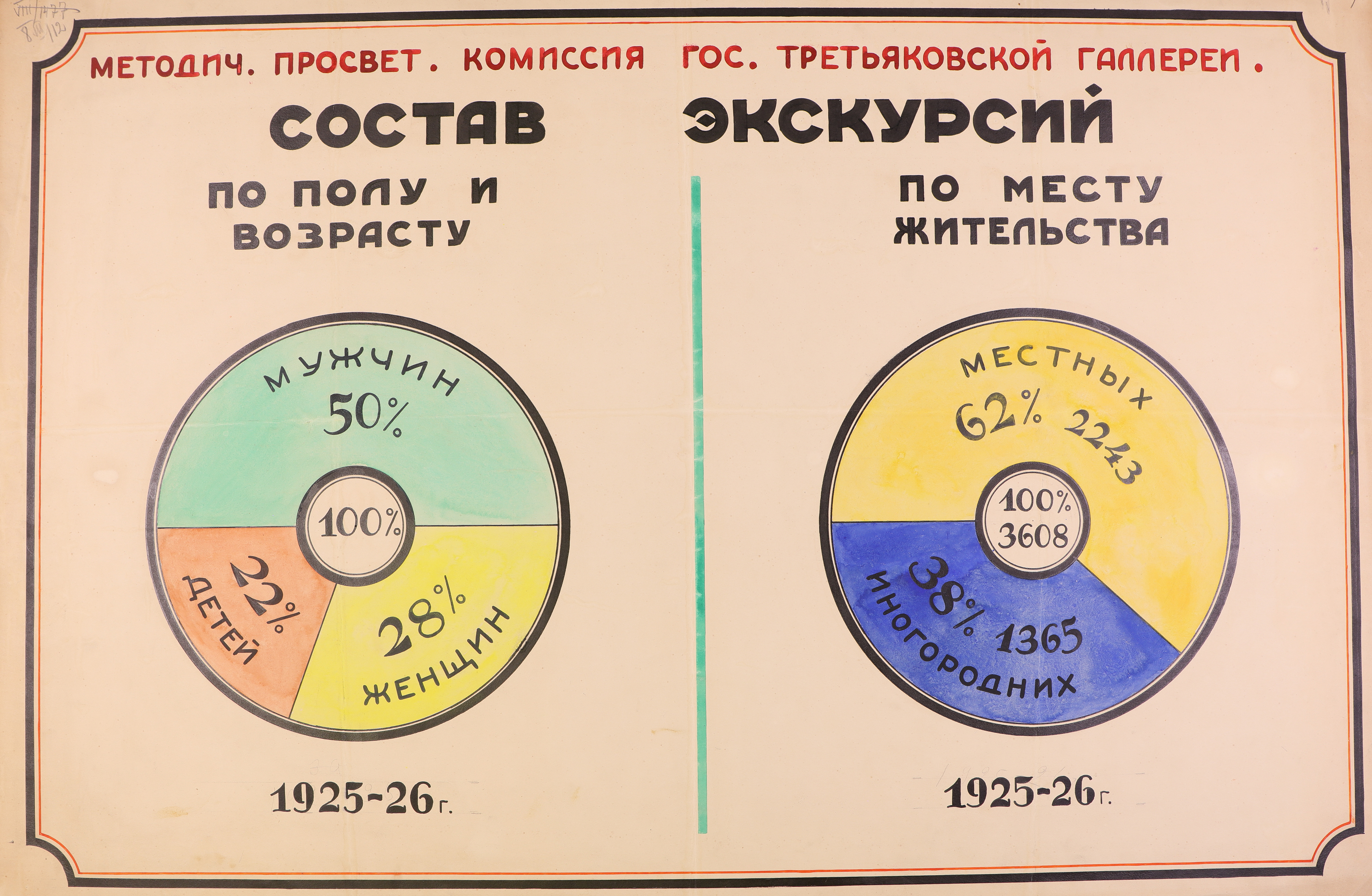 Диаграмма. Состав посетителей экскурсий Третьяковской галереи в 1925–1926 гг. по возрасту и полу, месту жительства. Государственная Третьяковская галерея