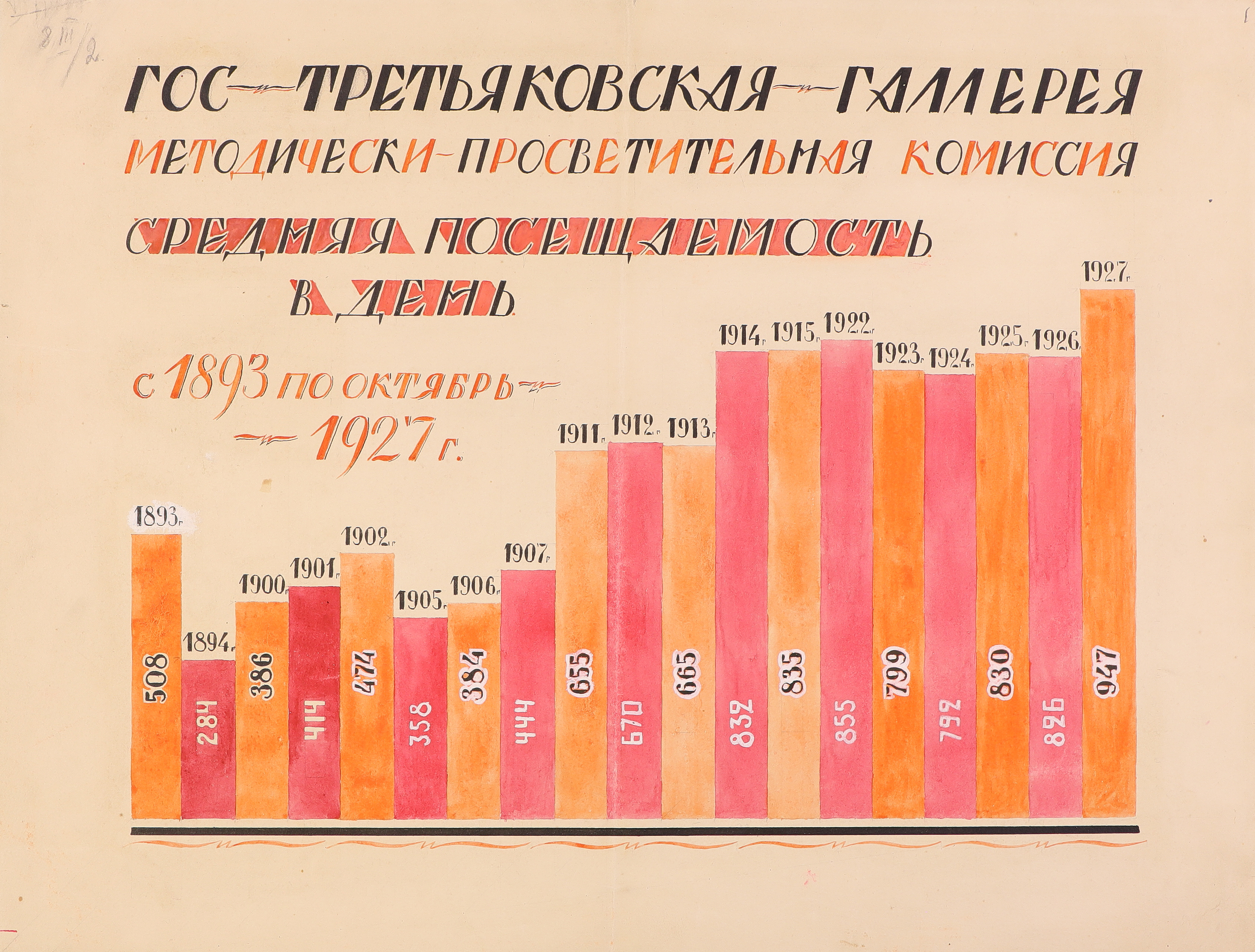 Диаграмма. Средняя посещаемость Третьяковской галереи в 1893–1927 гг. Государственная Третьяковская галерея