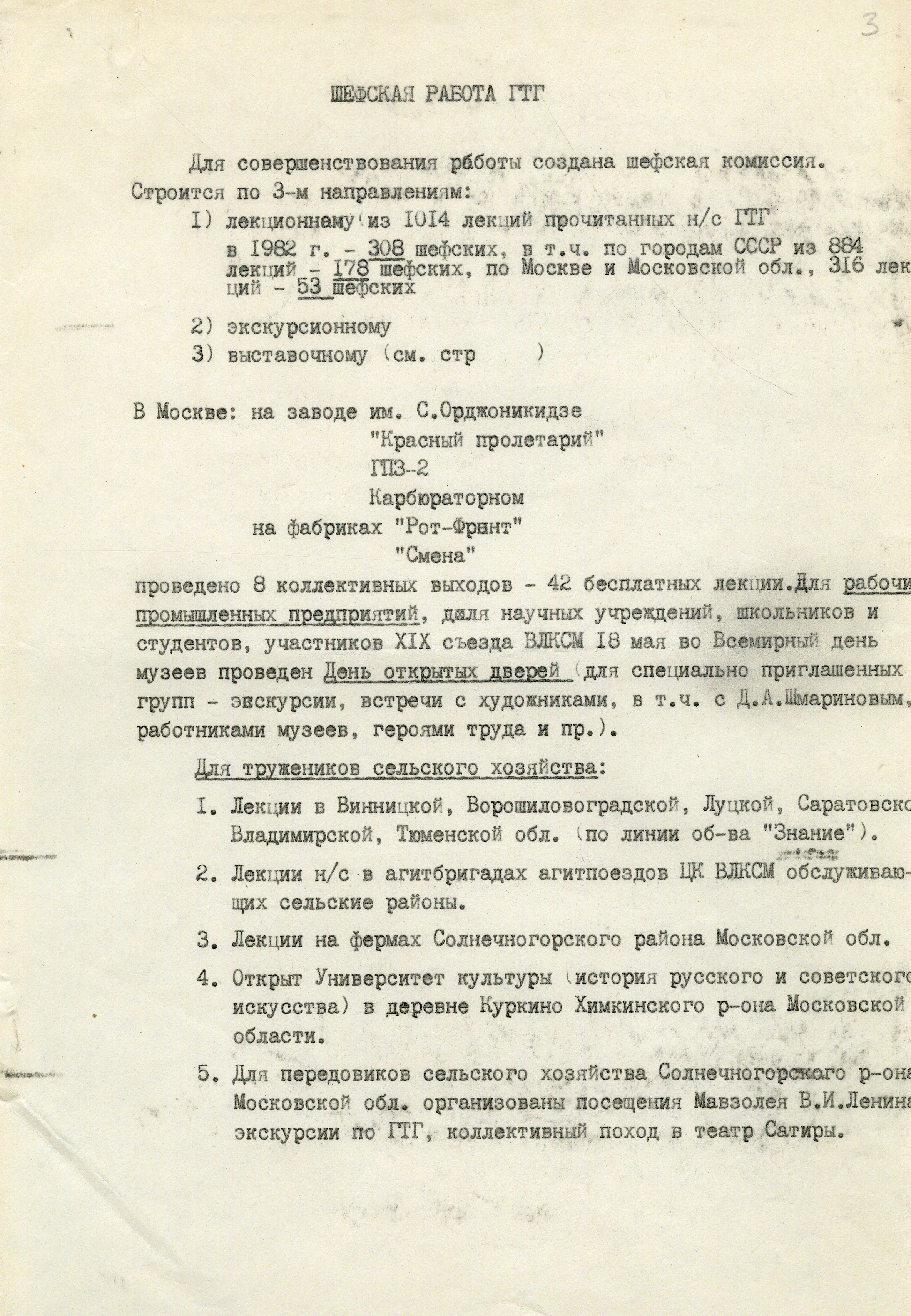Отчет по шефской работе Третьяковской галереи. 1982. Государственная Третьяковская галерея