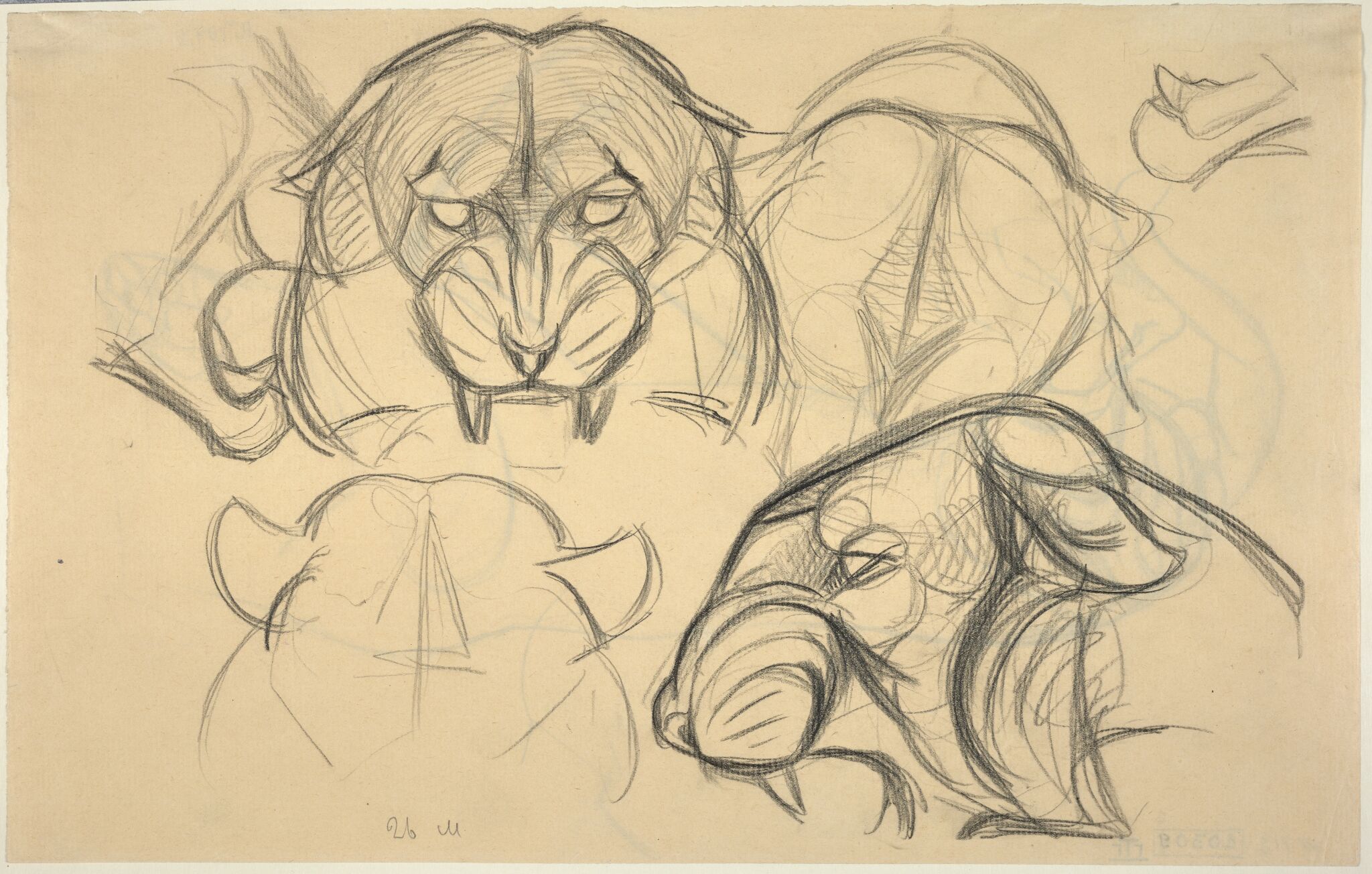Василий Ватагин. Голова тигра. Пять набросков. 1926. Государственная Третьяковская галерея
